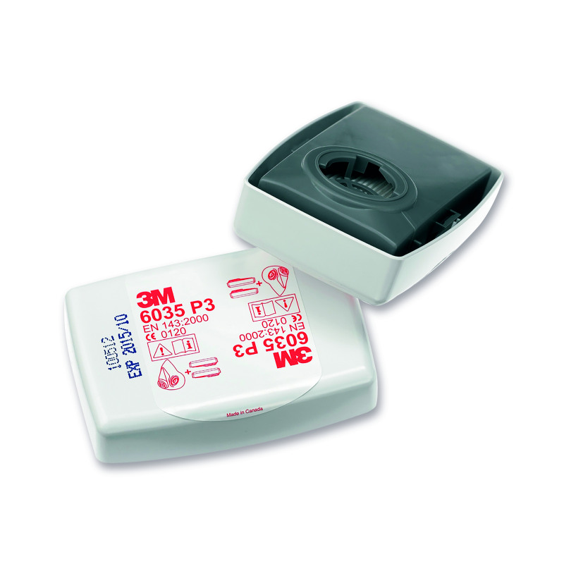 3M Particulate Filter 6035 protects against solids and liquid particles P3R, where excess levels of particulates are present in the workplace atmosphere. Supplied with plastic cage for rough applications.* Solid top design reduces chance of premature clogging* Unique easy to check seal promotes enhanced respirator fit * High temperature cover protects filter media from heat, sparks or physical damage. * Bayonet fitting ensures precise & safer locking * Versatility: can be used on all 3M 6000, 3M 7000 & 3M 7500 Series HalfMasks and Full Face Masks* Lightweight - 35g each (nominal)* Low breathing resistance* Tested and meets specifications to AS/NZS 1716:2003 Class P3 particulate filter when used with compatible 3M respirators.* Re-usable* FFP3 Filter* EN143 : 20001 BOX = 20 FILTERS (NOT PAIRS)