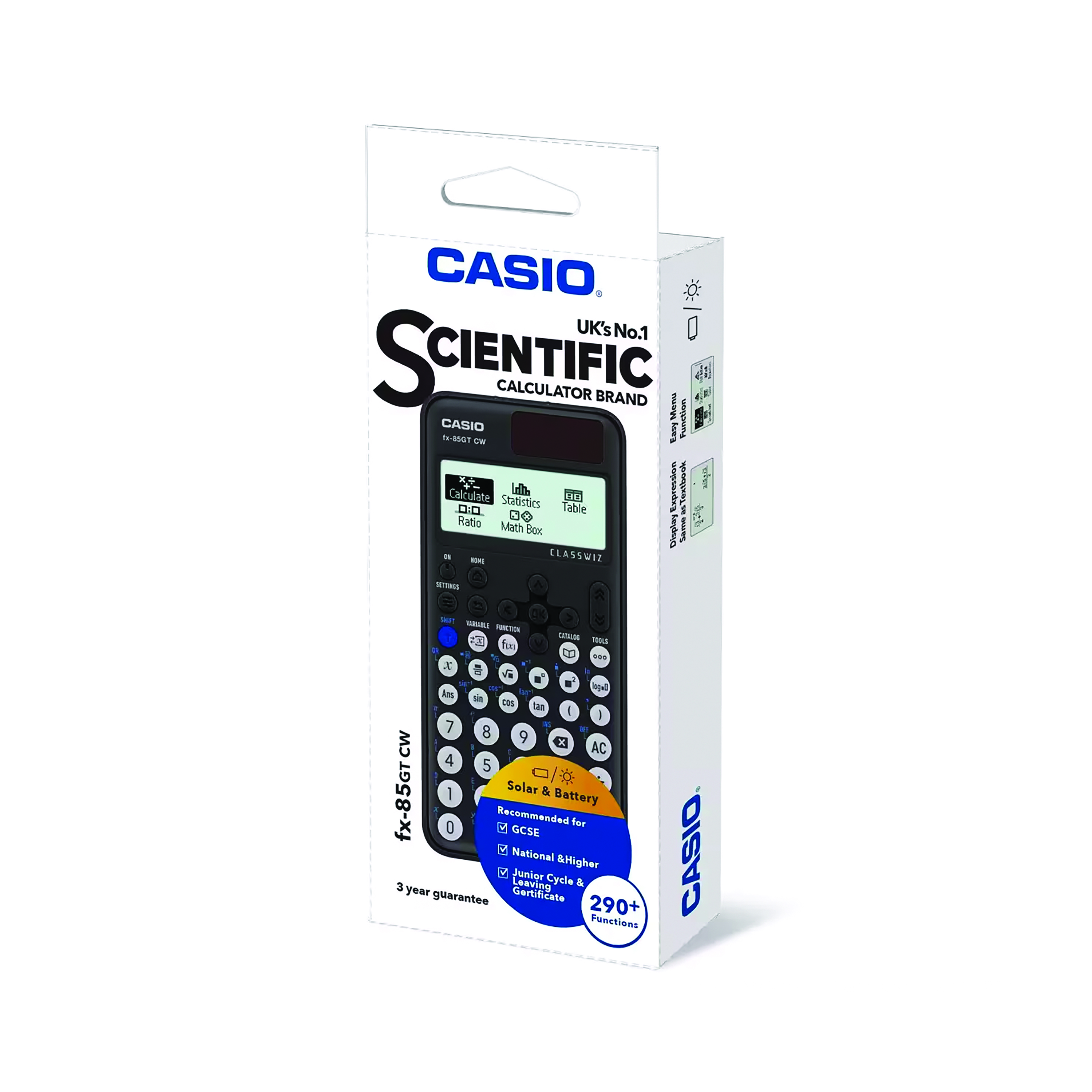 The Casio FX-85GT CW ClassWiz is the UK's best-selling dual-powered scientific calculator, and is allowed in every UK exam where a calculator can be used. Recommended and approved for Key Stages 3 & 4 (including GCSE, National and Higher, Junior and Leaving). This model is the upgraded version of the Casio FX-85GT X, and contains additional features, including a high-definition display and improved menu navigation.