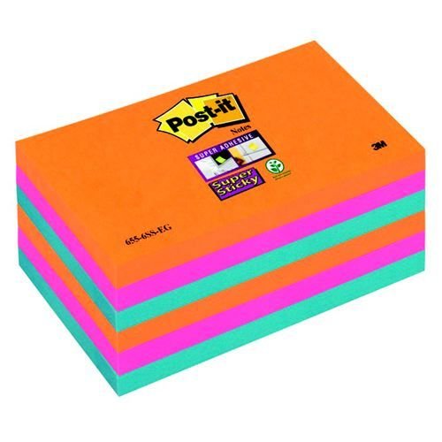 Ideal for desktop use, these repositionable Post-it Notes feature Super Sticky adhesive for a stronger, longer hold, which is perfect for important notes, messages and reminders. Each pad contains 90 sheets and measures 76 x 127mm. This pack contains 6 pads in assorted Bangkok colours including neon orange, fuchsia and mediterranean blue.